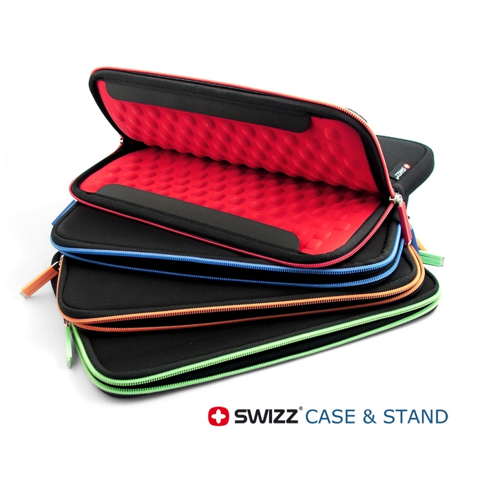 Jest to wysokiej jakości etui, chroniące sprzęt przed zarysowaniem i zniszczeniem w wyniku upadku. Zostało zaprojektowane w USA, wyprodukowane ze szwajcarską precyzją. Etui po otwarciu zmienia się w stojak do tabletu, iPada. Użyty materiał: pianka EVA + neoprene + nylon. Wymiary etui: 10'' 21.5x28.5 cm dostępne w kolorach: czarno-czerwony, czarno-niebieski, czarno-zielony, czarno-pomarańczowy.